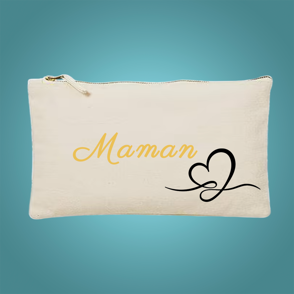 Offrez une attention pleine de tendresse avec notre trousse personnalisée en coton naturel, idéale pour glisser un petit mot doux, un prénom, un surnom ou un rôle précieux : maman chérie, mamie adorée, maîtresse en or,nounou adorée…